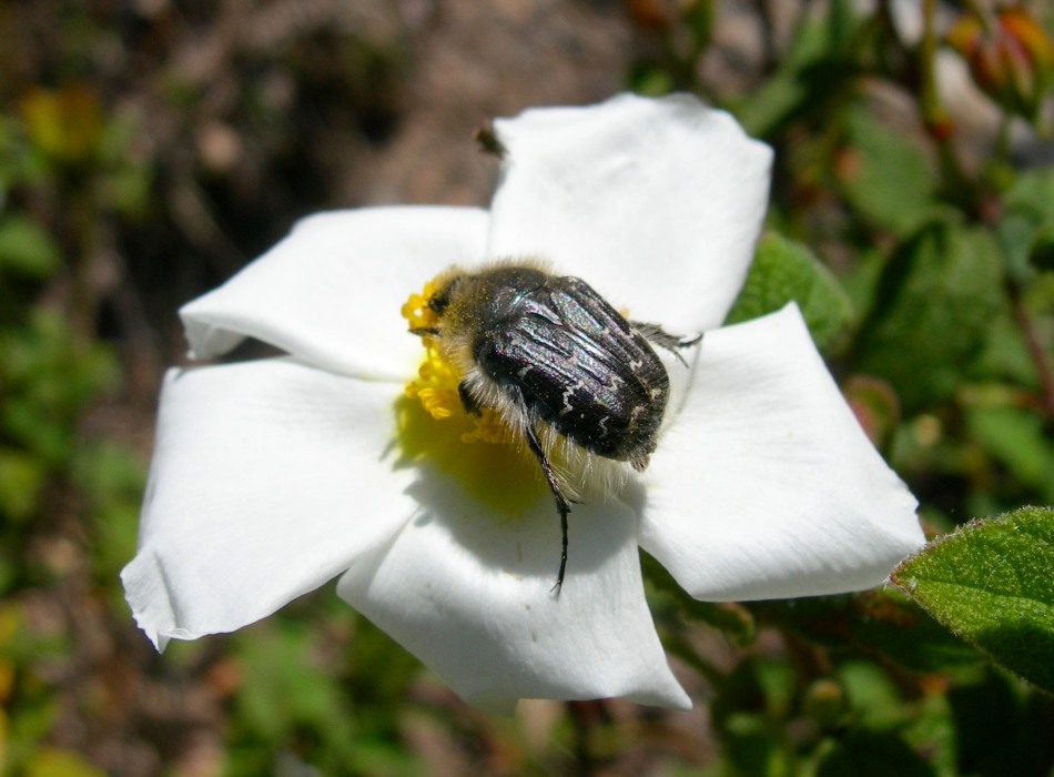 Nella foto seguente si intravede sullo stesso fiore anche una Oxythyrea funesta
