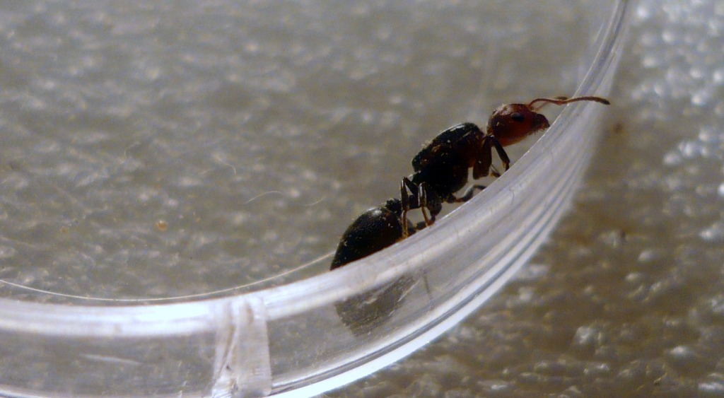 una regina di Crematogaster (quì si vedono abbastanza bene i due speroni retro pronotali), forse cercava un posto per fondare una colonia?