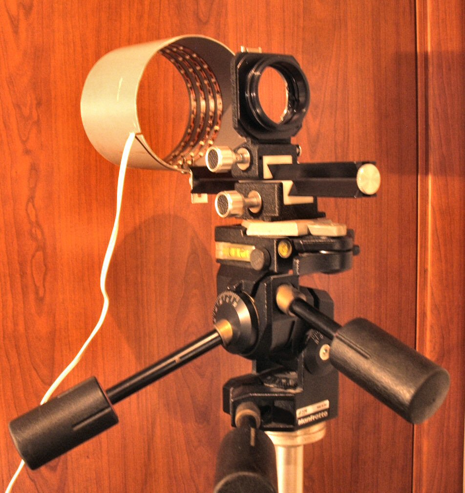Credo che la spesa più rilevante sia stata quella dei LED (45 Euro al metro), poi saranno inezie. Un "accrocco" di questo tipo, alto 10 cm, immagino che si possa usare sia per fotografare su stativo che al binoculare.