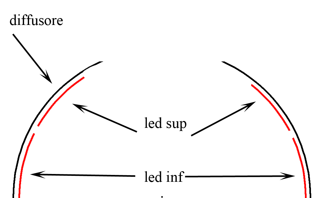 In effetti la cupola sarebbe la soluzione ottimale ma a questo punto i led devono essere di un altro tipo, cioè devono puntare verso l'alto e non verso l'interno.