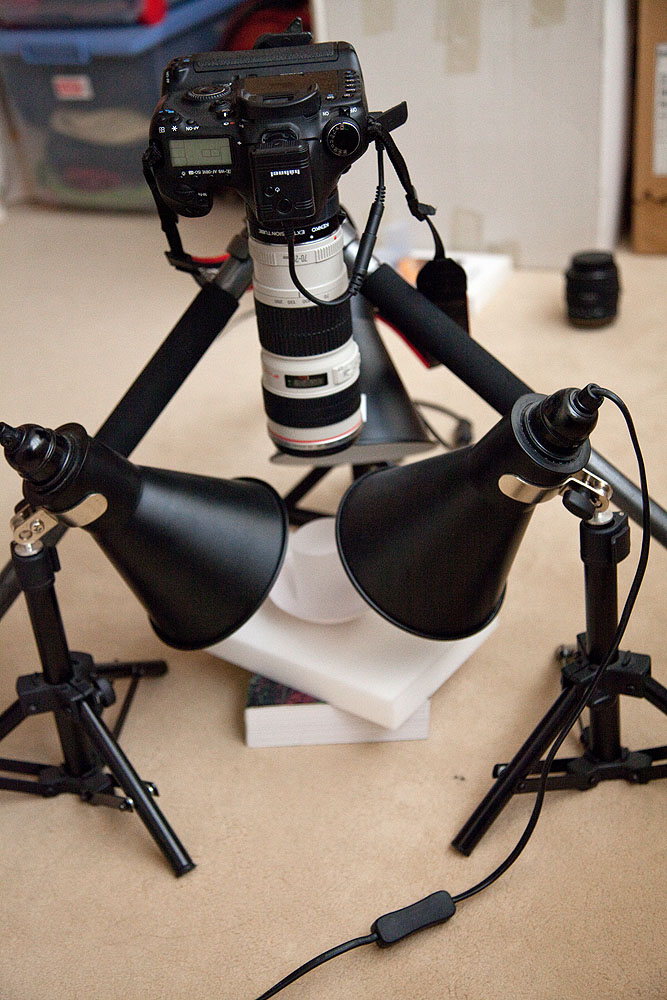 there is absolutely nothing to laugh at seeing your set-up! What kind of light source do you use? I know light is fundamental to obtain good images, and I'd like to find a simple and easy-to-use light source, like your.