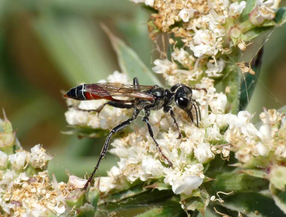 Tra i Prionix escludo il kirbii, escludo anche il subfuscatus che ha tutt'altro aspetto, escluderei il lividocinctus per l'assenza delle bande bianche addominali (meno segnate che ne kirbii ma sempre presenti) e per le spine della terza zampa che sono nere e non bianche, resta il viduatus compatibile ma non segnalato per la Sardegna.