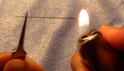 Taglio ad 1/3 un cotton fioc in obliquo in modo da poterlo poi infiggere nel plastazote dell'angolo inferiore dx della scatola, quindi applico una goccia sull'estremita' di cotone