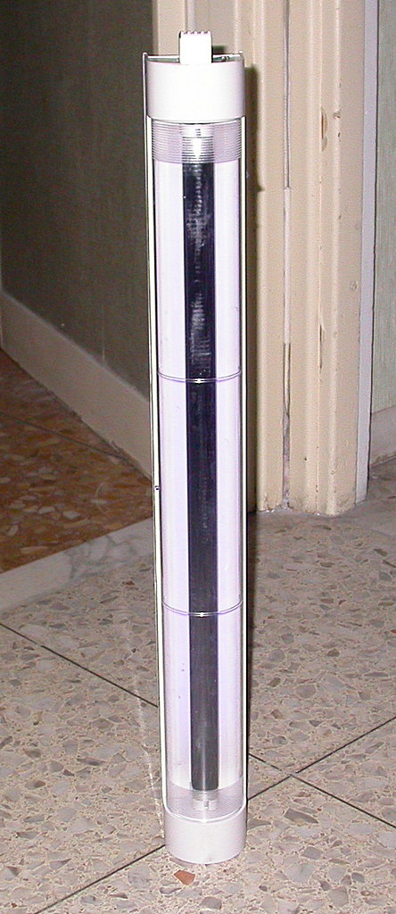 This is my portable UV lamp (black light or "lampada di Wood"). This is 60 cm long, and 18 Watt, powered by a small battery.