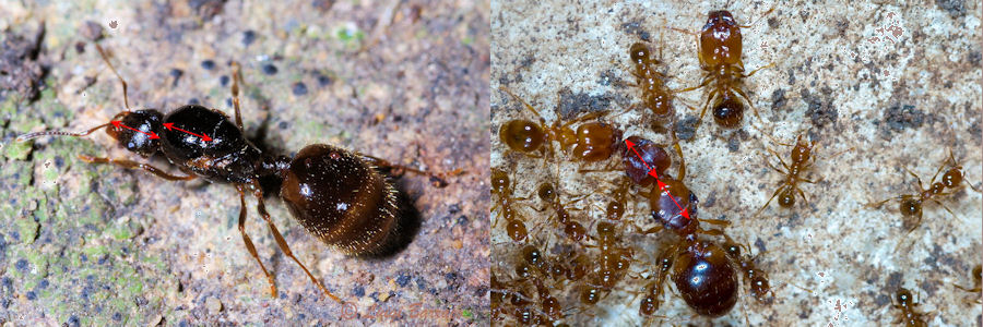 Le regine di Pheidole sp. che ho osservato io avevano la testa proporzionalmente più grossa e non avevano la "gobba".