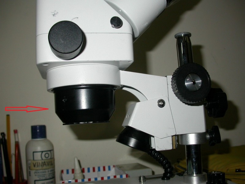 Una domanda probabilmente banale: dunque, vorrei comprarmi un illuminatore a led anulare da montare sul binoculare. Andrà montato nella parte che ho indicato con la freccia rossa, giusto?