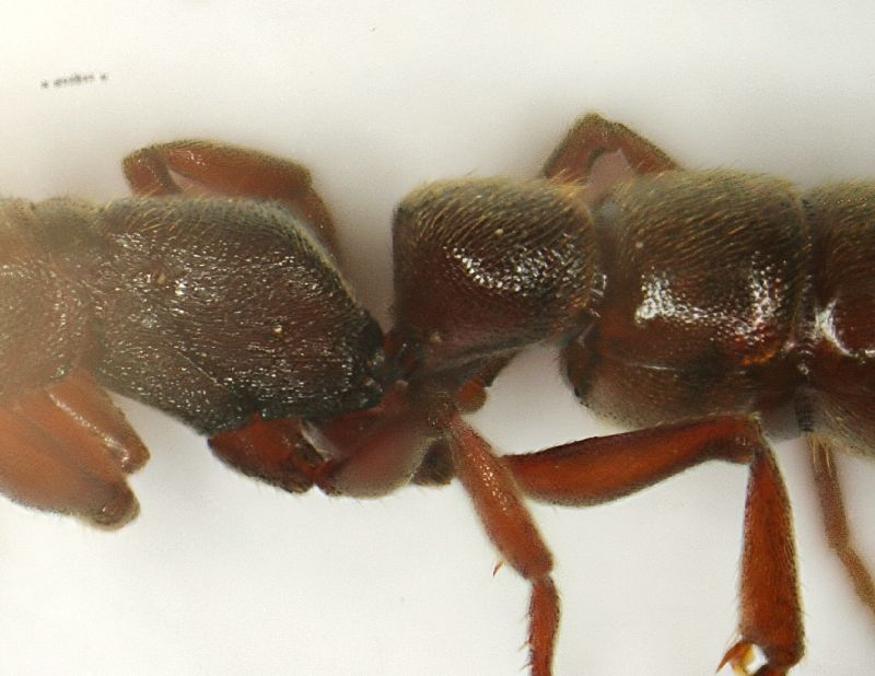 Bellissima...! Io però direi che è l'Amblyopone impressifrons, che è ancora più "rara" dell'altra... confrontando con il (mio) disegno, guardate la forma delle lamine frontali, la spina all'apice delle guance, la dentatura del clipeo e delle mandibole e anche le dimensioni maggiori (denticulatum è più piccolo). Sono formiche di cui non si sa praticamente nulla...