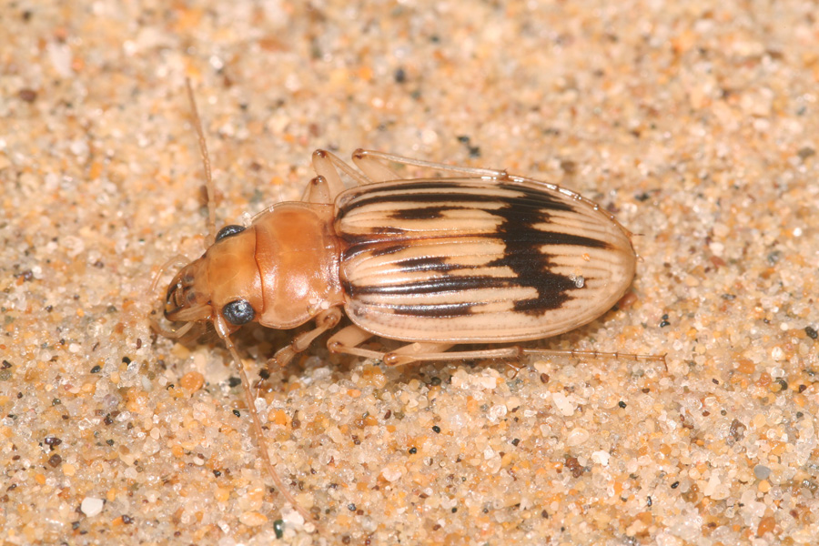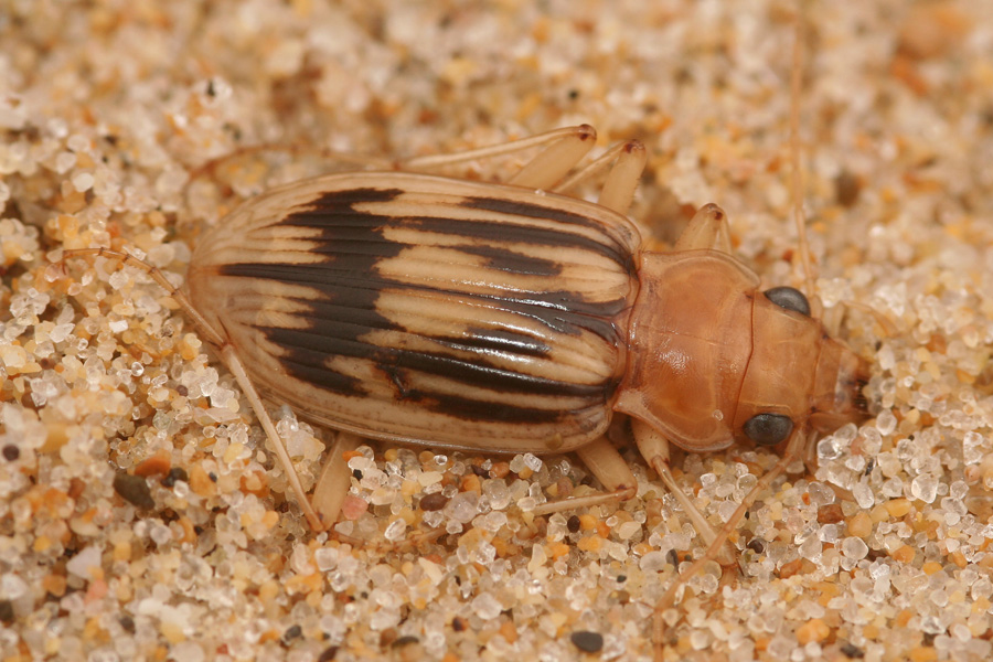Insieme al Parallelomorphus laevigatus (quindi praticamente sulla linea di battigia) puoi aver trovato solo Eurynebria complanata, certo non Nebria psammodes.