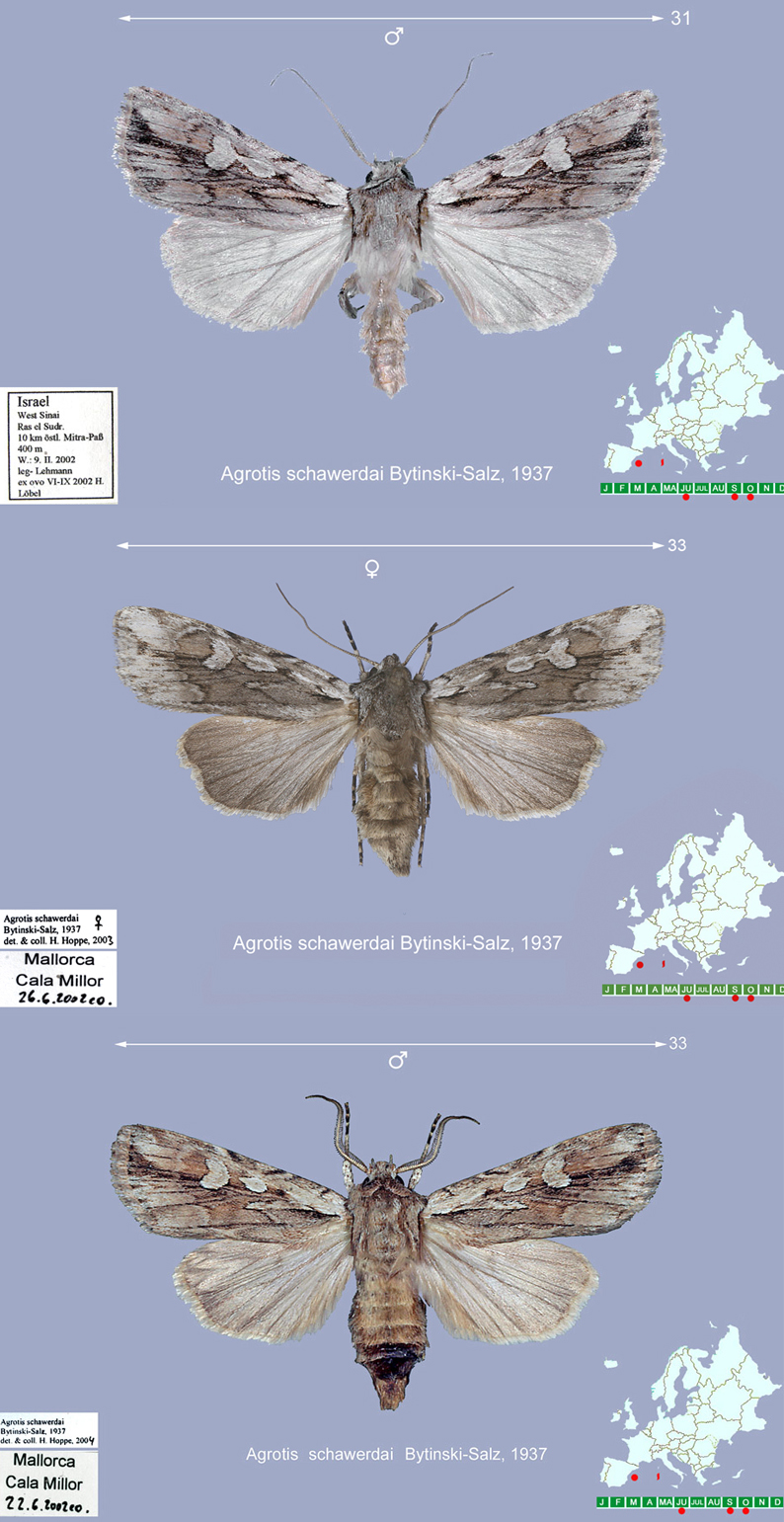 allego, sperando possano tornarti utili, le immagini di tre esemplari di Agrotis schawerdai Bytinski-Salz, 1937, di provenienza Israele e Mallorca.