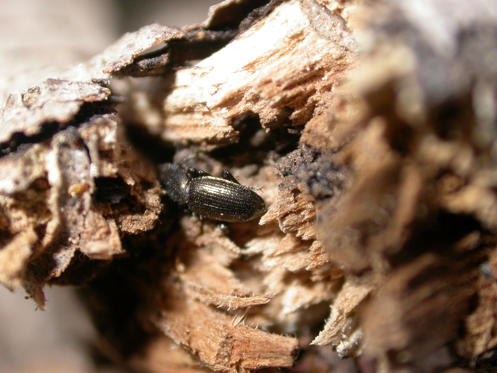 Oggi, con un po' di buona volontà e impegno, ne ho rimediato qualche altro esemplare: gradisce rifugiarsi nei fori degli xilofagi: