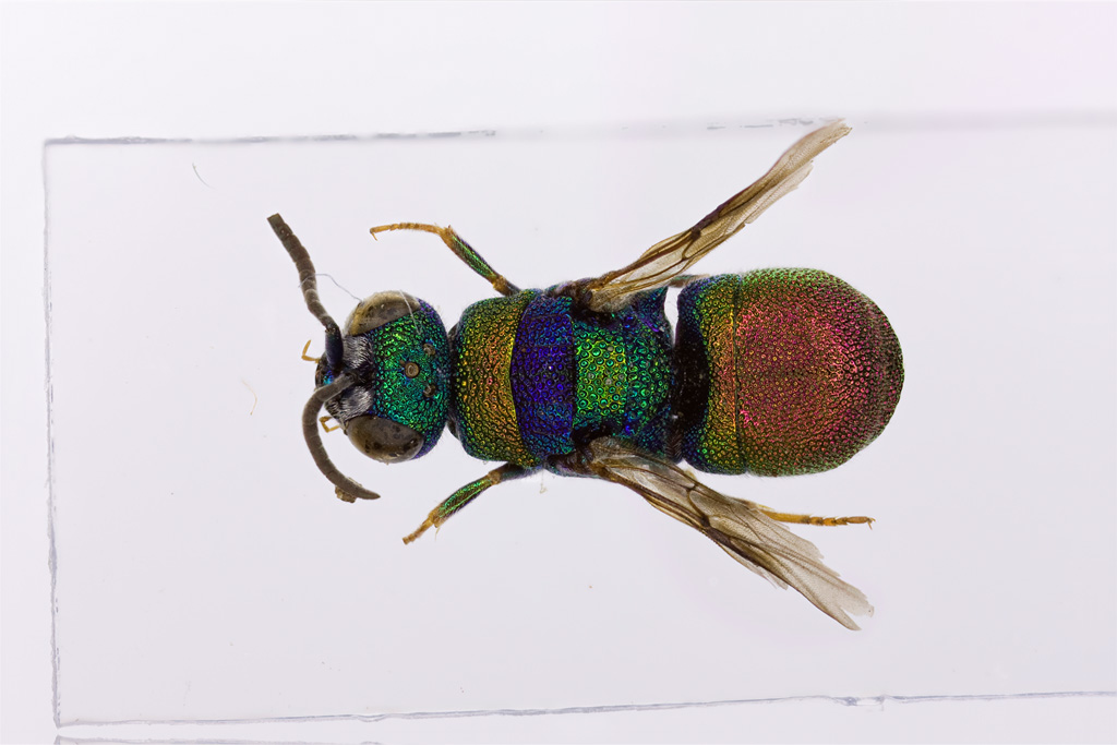 Ciao a tutti. Sullo spunto di questa discussione, mi è venuta voglia di fare qualche esperimento per capire quale tipo di illuminazione è più adatto per le foto di mio interesse. O meglio, di nostro interesse. Da anni sul microscopio uso lampade a fluorescenza e non ho mai avuto guasti. Ma OK, per precauzione tengo sempre dei tubi di scorta. Sicuramente gli illuminatori a LED hanno caratteristiche molto più moderne, come indicato da Maurizio. La maggiore potenza non è fatto da poco e questo consente di giocare anche con schermi diffusori per ridurre al massimo i riflessi sui tegumenti lisci. Dal punto di vista dell'osservazione al microscopio, inoltre, la presenza di un dimmer per la regolazione dell'intensità è un ulteriore indubbio vantaggio.  Ma... come dire... la cosa non mi convince ancora!  Al punto che già tempo fa avevo acquistato due illuminatori anulari da microscopia, uno a 64 LED e uno a fluorescenza da 8W, ma solo ieri ho iniziato a fare qualche test fotografico comparativo. Allego qui un primo esperimento. Si tratta di un bellissimo piccolo criside, Hedychridium vachali Mercet 1915, della Spagna. I due stack sono il risultato di 15 (fluorescenza) e 14 (LED) scatti.