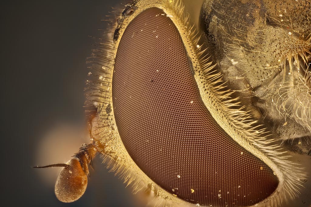 E' la testa di un sirfide ripresa a 10.5x su sensore FF e il risultato direi che è soddisfacente .... sono scomparse le aberrazioni nelle zone periferiche che invece erano abbastanza evidenti quando utilizzavo i doppietti della Thorlabs.