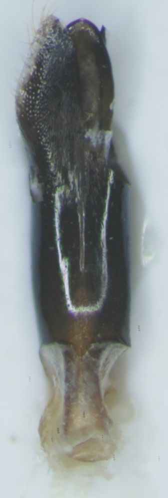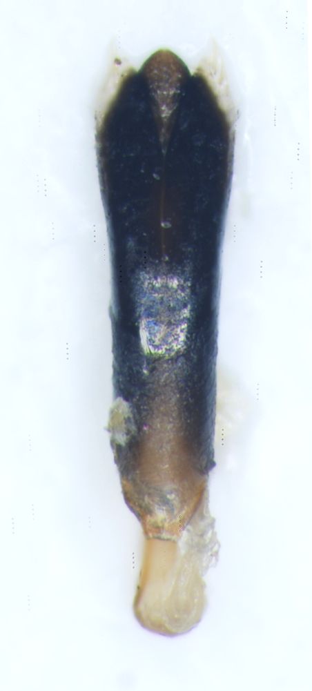 L'unico paramero dell'edeago rimasto non corrisponde a quelli di questa specie, ma sei sicuro di non averlo schiacciato, deformandolo?