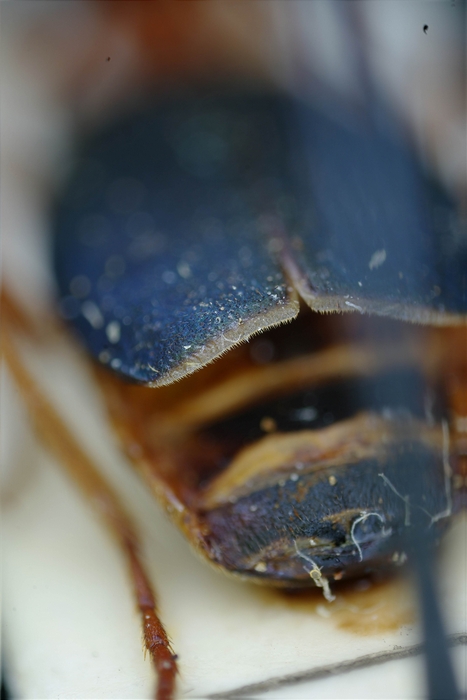 Non è proprio a fuoco, ma è la foto migliore che mi è venuta... Comunque mi pare si distingua bene una fascia di setole corte e fitte! (si riconosce nell'elitra sinistra, dove è sovrapposta all'addome) Si può confermare B. immaculicornis allora?
