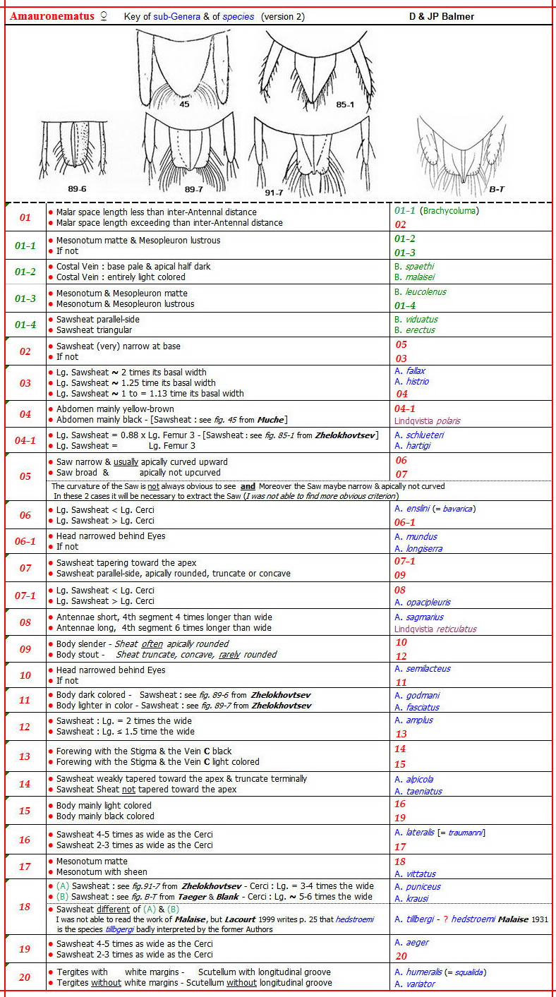 AMAURONEMATUS ♀, Key of sub-Genera & of species (of France & Italy) (version 2) - Tenthredinidae - Nematinae
