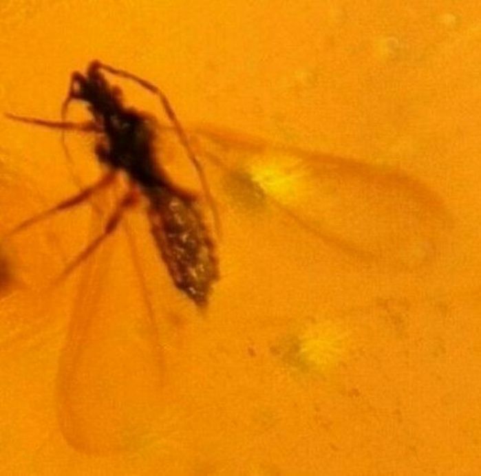 Eterottero fossile in ambra birmana del periodo Cretaceo