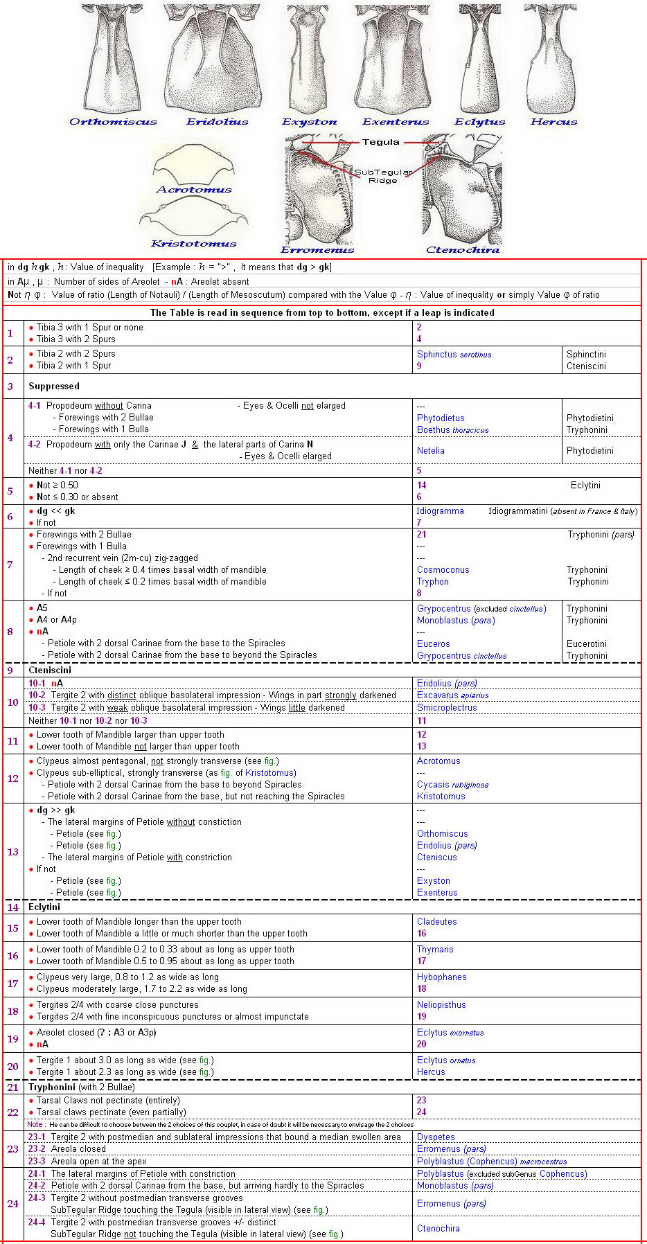 01 - Adaptation for the ♂ & ♀ (of France and Italy) of the subFamilies's Key contained in "The Genera of Ichneumonidae" of H. Townes (1969 - p.53/59) - Ichneumonidae