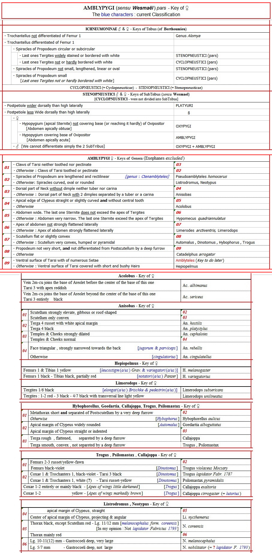 AMBLYPYGI (sensu Wesmaël) pars - Key of Female - Ichneumonidae