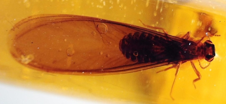 Embolemidae (cf.) fossile nell'ambra del Myanmar Cretaceo (99 m.a.).