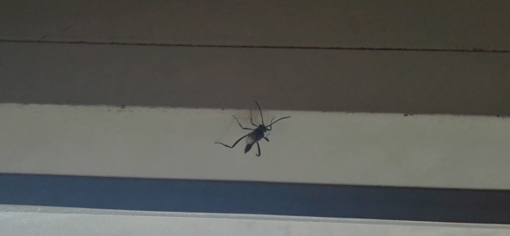 Insetto bande nere occhi verde acceso; Asilidae gen. sp.