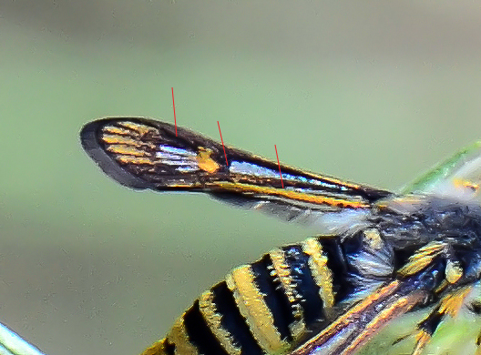 Logoste ha scritto: Ciao Enzo, spero di non diventare “ossessivo” nei tuoi confronti , ma per il momento parrebbe che non ci siano altri utenti che ti possano rispondere sui Sesiidae Sono d’accordo sul genere. Ho controllato su lepiforum.de e parrebbe che di specie simili ce ne siano due: Bembecia ichneumoniformis e Bembecia albanensis, entrambe date per l’Italia su faunaeur.org. Ma tu, i lepidotteri li fotografi solamente? Perché temo che a volte per arrivare a determinare la specie, bisognerebbe fare un’analisi più dettagliata sul campione (vedi “Diagnose” a questo link: http://www.lepiforum.de/lepiwiki.pl?Bembecia_Ichneumoniformis) StefanoNB Bella fotografia! Ciao Stefano Sì, faccio soltanto foto e raccolgo raramente, solo quando non ho la possibilità di fare scatti a soggetti che ritengo interessanti, per non perdere l'occasione. Comunque, grazie al tuo intervento ed al confronto sulla pagina che hai linkato (che non avevo guardato), sono giunto alla conclusione che si tratta di B. albanensis. Inserisco un pessimo crop, ricavato da un'altra immagine parecchio sfocata, dove però si vedono tutti e tre gli elementi distintivi indicati su lepiforum.de ![]() Thank you ![]() |