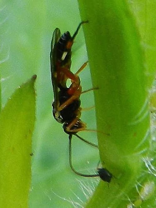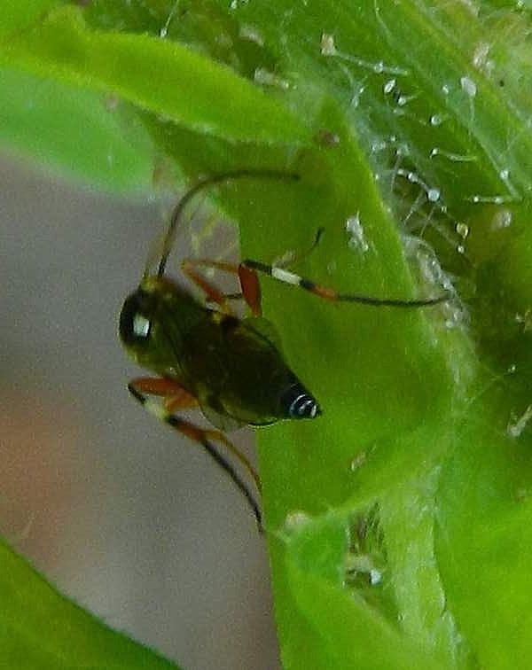Presumo si tratti di un imenottero appartenente alla famiglia Hichneumonidae a caccia di afidi.