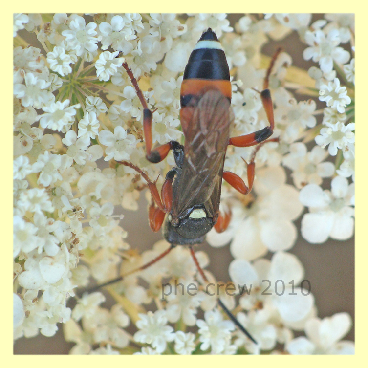 femmina di Ichneumon sarcitorius L.,1758 (Ichneumonidae Ichneumoninae), parassita di diverse specie di Lepidotteri.