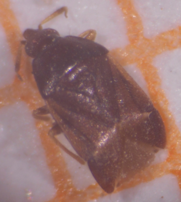 Qualche anno fa (per questo la data è incerta, probabilmente autunno 2017), un amico giardiniere mi ha portato dei nidi di uccelli, di piccole dimensioni (diametro cm 8-12 circa). Uno di questi lo ho conservato in una scatola trasparente chiusa e quando lo ho ripreso ho trovato diverse decine di piccoli ditteri (altra richiesta di identificazione) e tre esemplari (uno dei quali a pezzi) di questo piccolo eterottero (mm 1,3 circa, si vedano le foto su carta millimetrata).