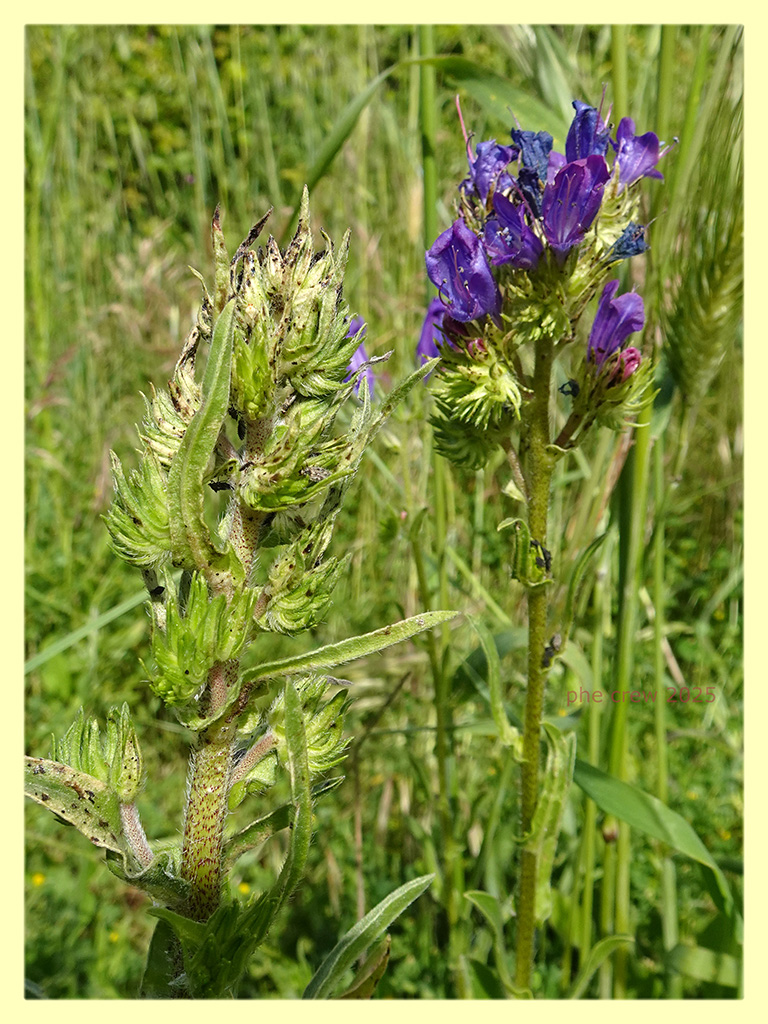 queste sono due esuvie dello stadio V delle larve (quelle postate sopra invece sono vive), come si vede l' adulto fuoriesce dalla testa lasciandola praticamente intatta. Sotto la pianta ospite Echium sp.....la prima foto di una pianta infestata, l' altra di una li vicino dove ancora non hanno intaccato.
