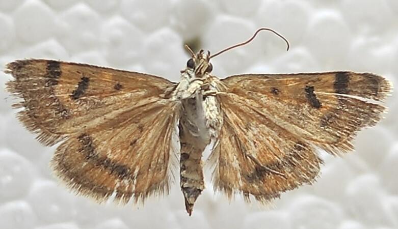 Anche questa non ha avuto vita facile... un'antenna rotta, ali malconce...direi Crambidae...se dovessi azzardare (tanto è gratis :lol: ) Pyrausta despicata (Scopoli, 1763)..?