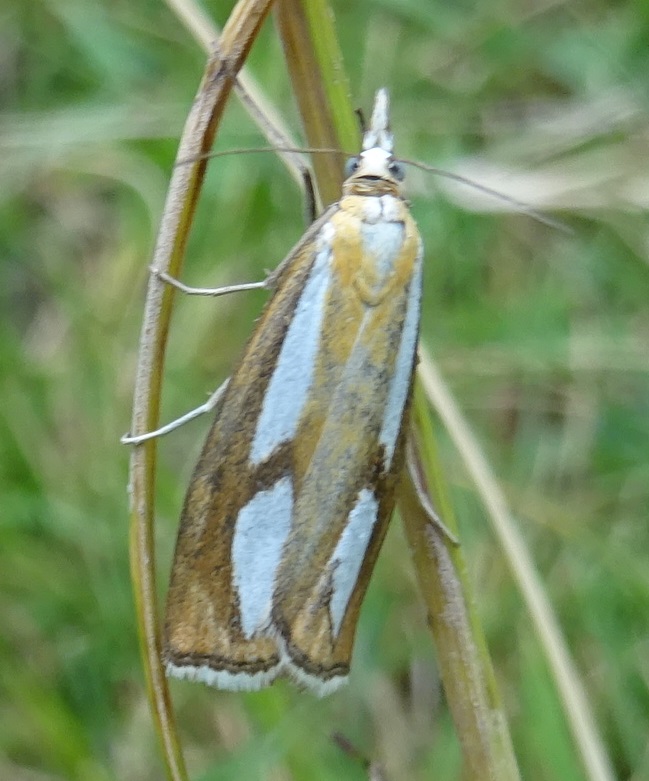 Salve, guardando un po' di foto avevo pensato a Crambus pascuella, ma la riga marroncina che divide in due l'area bianca mi pare diversa. In un prato a circa 1700 mt. Lunghezza circa 1,5cm, forse meno. Qualche suggerimento? Grazie!