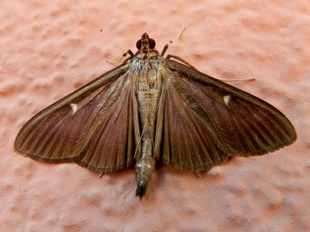 Potrebbe essere la forma scura di Cydalima perspectalis (Walker, 1859) - Crambidae.
