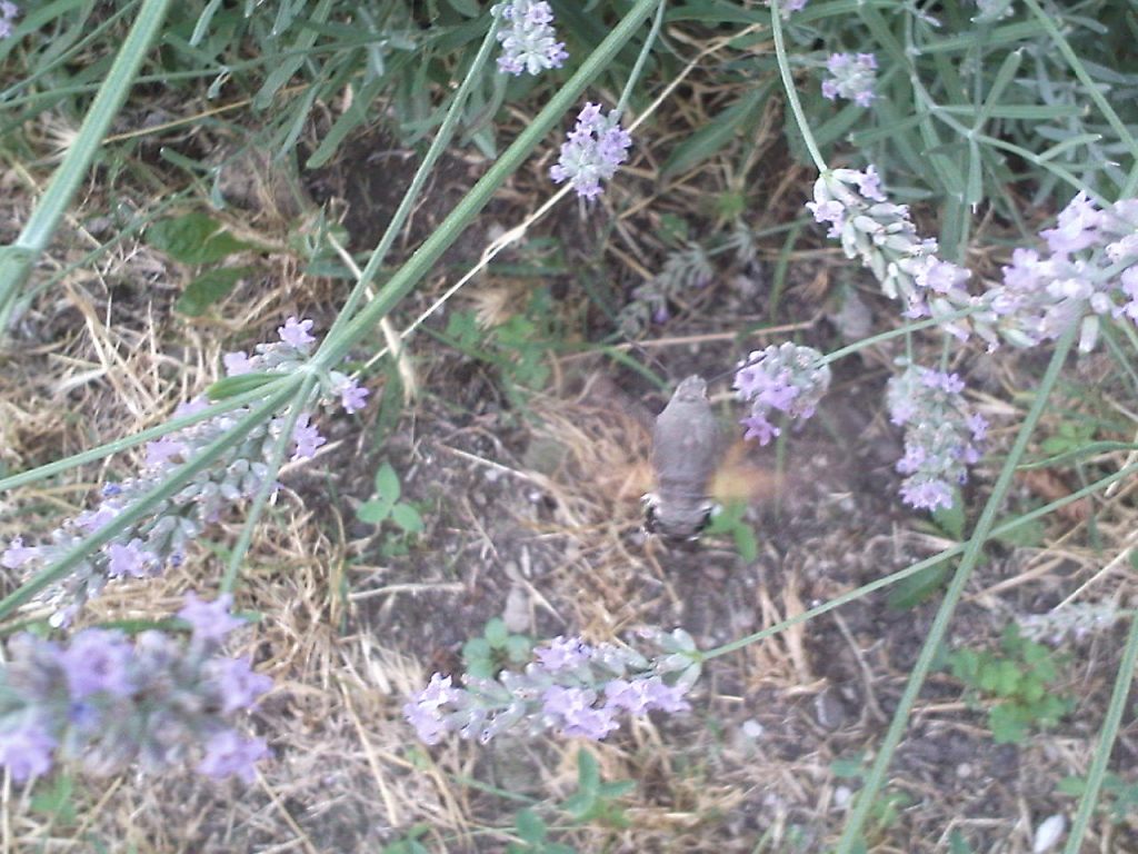 Va detto che sembra quasi un pennuto !! E' un animaletto molto bello. E' lungo 2-3 cm, arriva di sera e si gira tutti i fiori della lavanda :p le api cercano di cacciarlo ma lui imperterrito e velocissimo ritorna a fare il suo pranzetto.