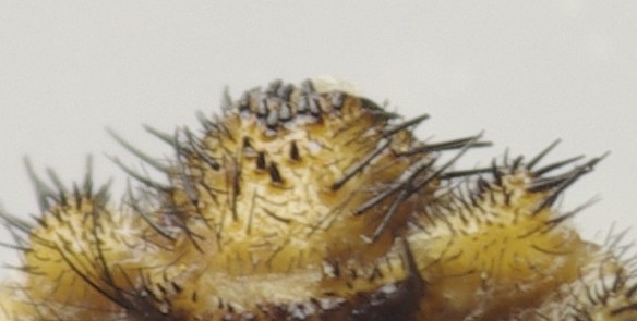 Se interpreto bene sono capitato su un esemplare teratologico, con le prime due righe di setole che non sono ben distinte come dovrebbero: io ci "vedo" due "righe" di 3+7 oppure di 4+6 setole, mentre dovrebbero essere rispettivamente 6+4 in bore o 6+6 in inconspicuus