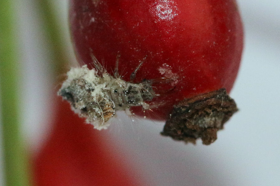 Sopra un rametto di bacche raccolte durante una passeggiata, ho trovato questa larvetta di ca. 4 mm (senza le tenaglie). Mi ricorda le larve di Pseudomallada sp. che trovo spesso sui muri del terrazzo, ma è più piccola. E' sempre lei o ci sono altri generi simili? Grazie.