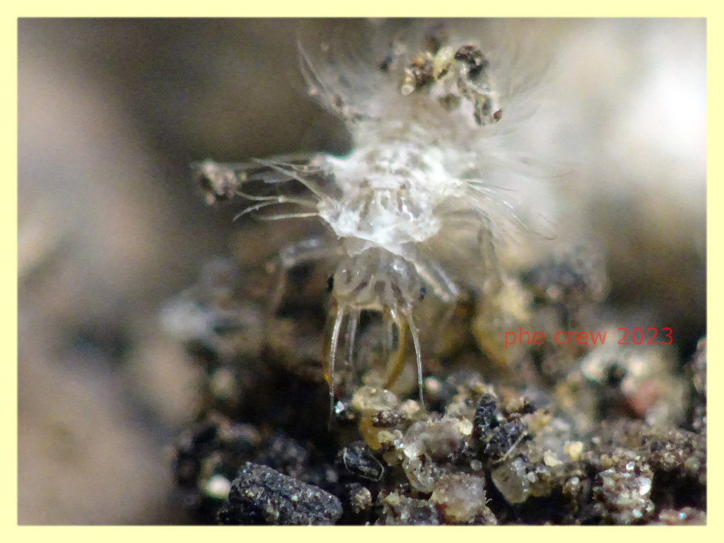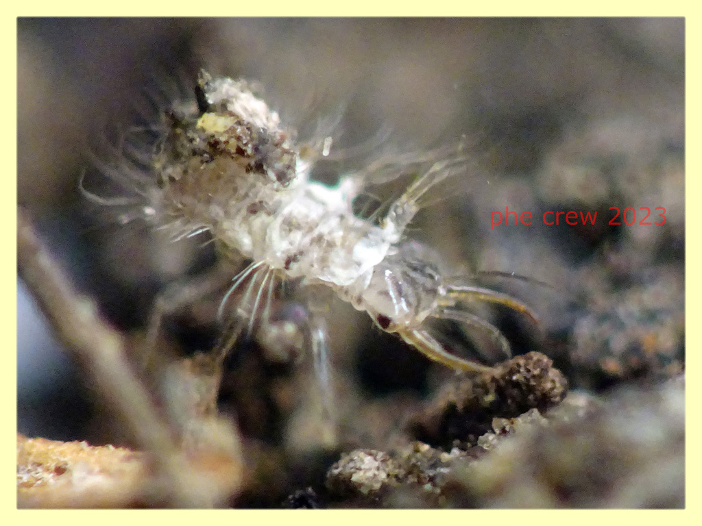 ...approfitto di questo post per inserire una sequenza di foto di una larva di Chrysopidae...precisamente una larva di Pseudomallada prasinus (gia' allevata in passato). In effetti sul groppone si mettono di tutto anche piccoli detriti come in questo caso. E' una larva di 1,5 mm. del 11.IX.2023 fotografata ad Anzio (RM). La posto soprattutto perche' mi ha incuriosito come si sceglieva accuratamente i detriti che poi si incastonava sulla schiena. Con le antenne (quelle piu' lunghe e fini) tasta il terreno...