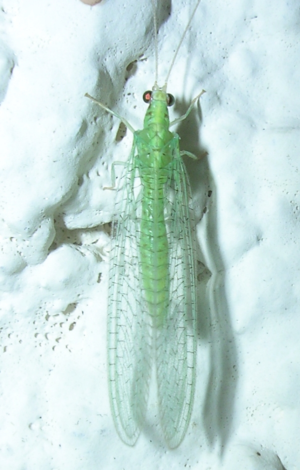 Una Dichochrysa su un muro bianco di notte: meglio di così per vederne i colori reali non potrebbe andare :?
