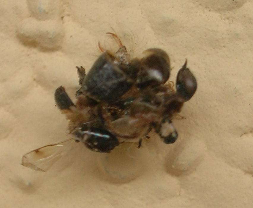 Si ricoprono con ciò che trovano in giro (molto raramante con i resti delle prede), per cui dovrebbe essersi trovata in mezzo ad un gruppo di Imenotteri morti?? (Imenotteri lo sono, ma li vedo troppo male!)