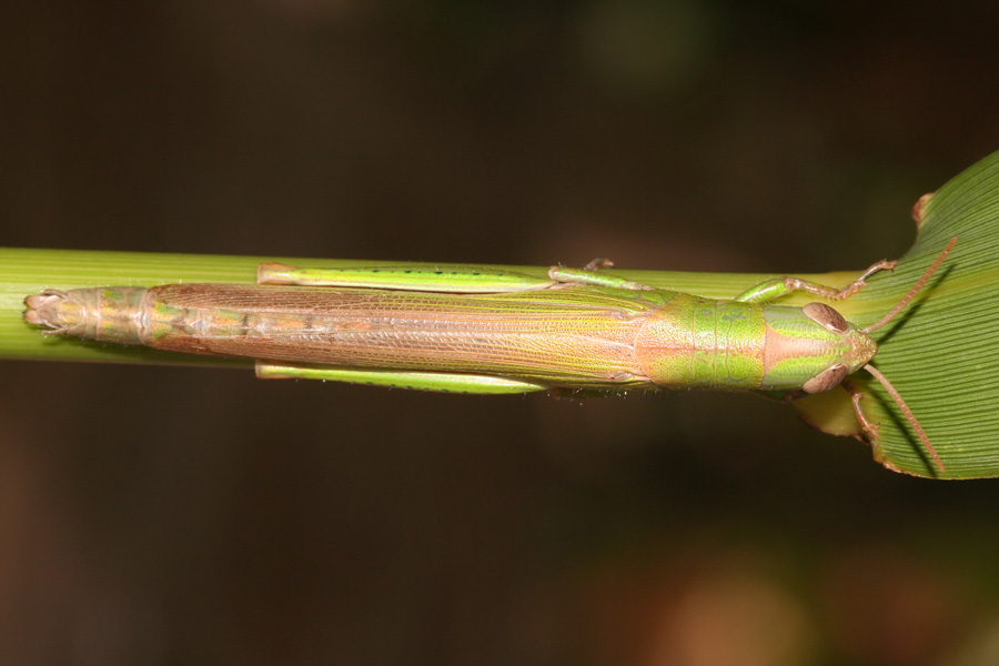 Calogero, dopo averla confrontata con un'immagine inserita qui da un nostro utente ( ;) ), avanzo una diagnosi: Tropidopola cylindrica cylindrica (Marschall, 1836) - Acrididae