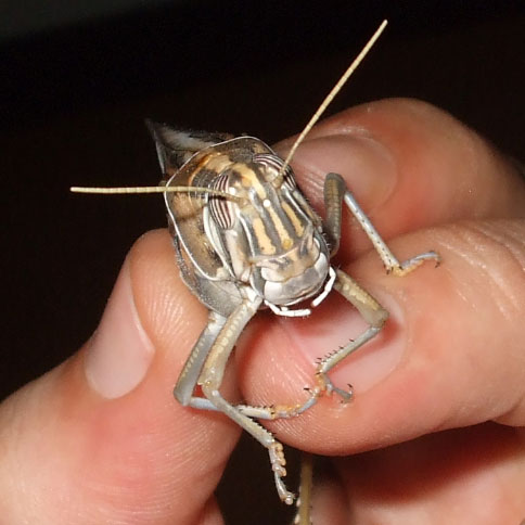 Il pronoto interamente bordato di bianco.......Per me questa e' Schistocerca gregaria (Forskal, 1775).