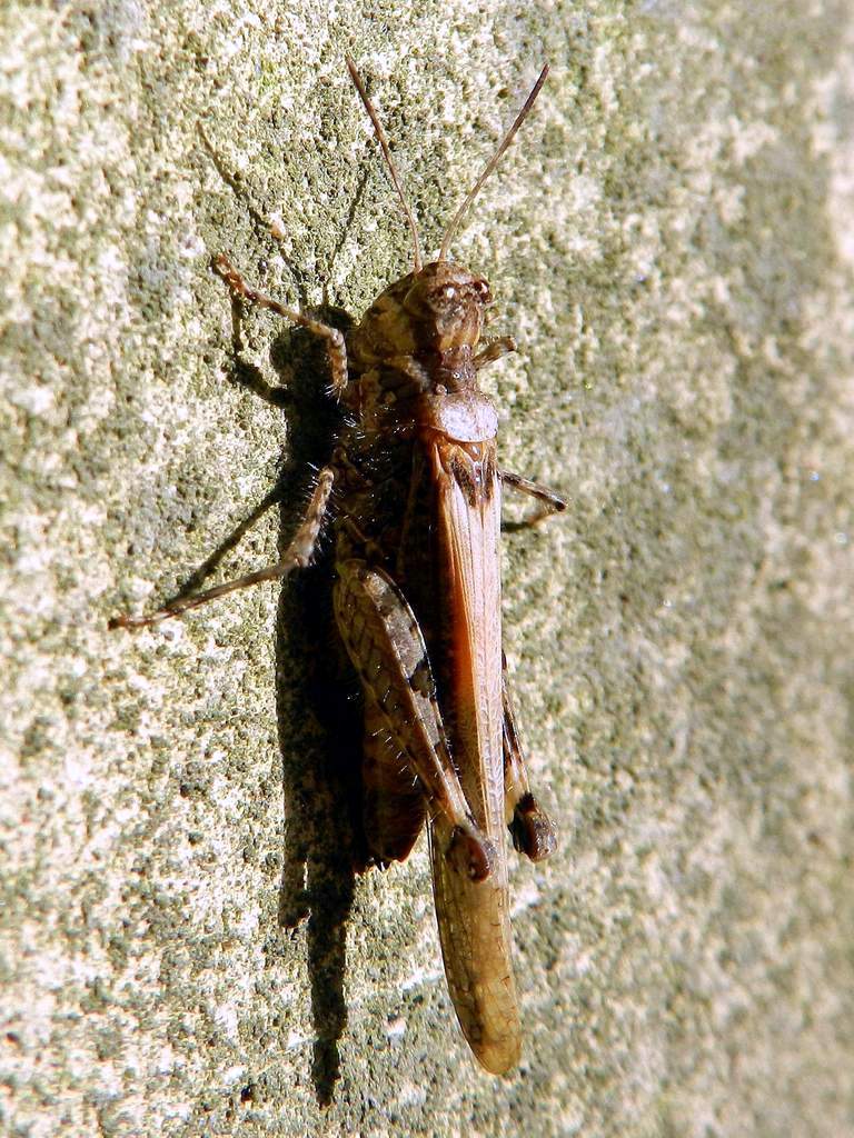 Fotografata su muro di edificio, questa elegante cavalletta si è involata quasi subito permettendomi tuttavia di notare il rosso delle ali inferiori.