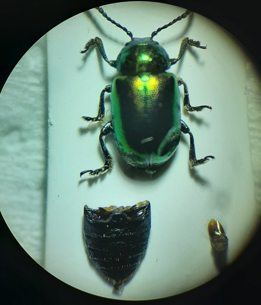 La lama di un bisturi sarebbe esageratamente grande per un crisomelidae. Puoi fartene uno facilmente, efficiente e adeguato come dimensioni, usando un pezzetto di lama di un rasoio monouso, montata con un pò di fantasia e due gocce di cianoacrilato su un bastoncino di legno.