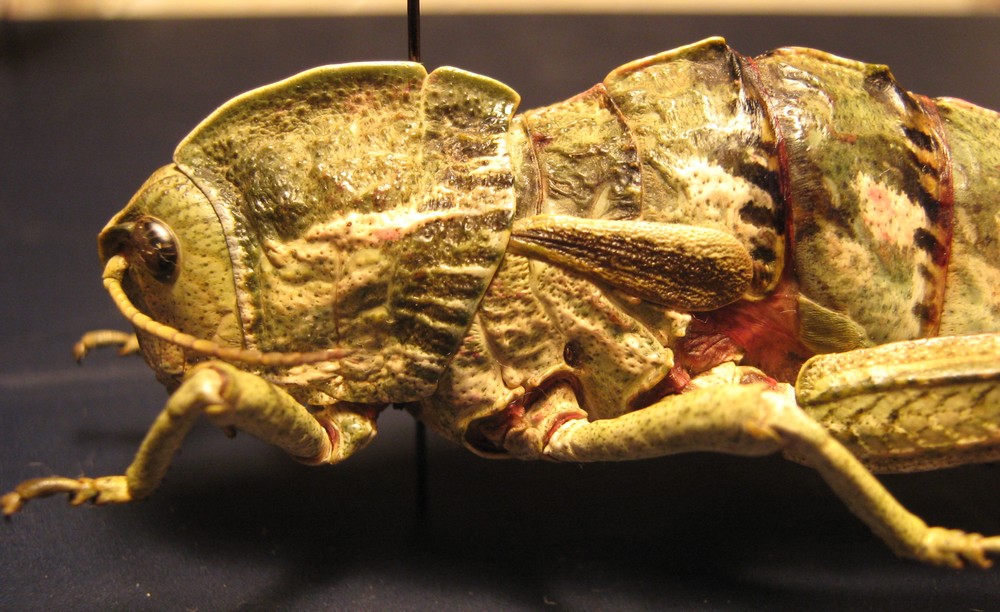 Ecco qualche immagine di una coppia a secco il cui risultato finale mi soddisfa. Perché i Pamphagus tengano un minimo di colorazione io li uccido con poco etere (per evitare la comparsa della colorazione rosa che subentra al verde), li tolgo dall'etere e li preparo appena possibile svuotando tutto l'addome (compresa la zona toracica) e infine li riempio di cotone (con l'accorgimento di spillarli prima di riempirli altrimenti lo spillo non entra ! :no1: :cry: )
