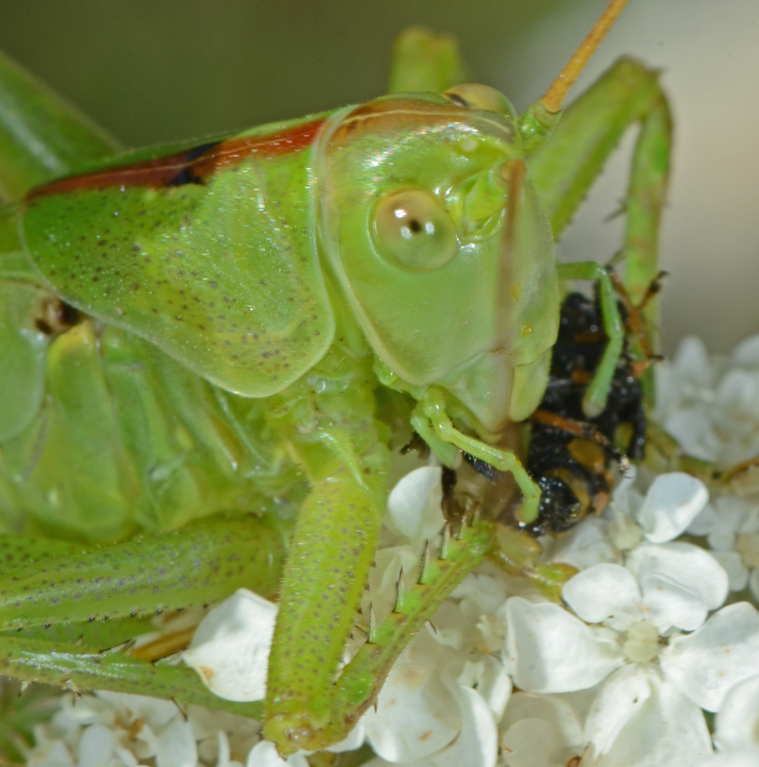 Comunque ci sono parecchi studi sulla correlazione tra la dieta dei vari ortotteri e la forma delle mandibole, proprio come nei mammiferi! (gli erbivori hanno mandibole più rettangolari mentre gli onnivori e carnivori le hanno progressivamente più appuntite e taglienti, in base a quanto preferiscono vegetali o animali...)