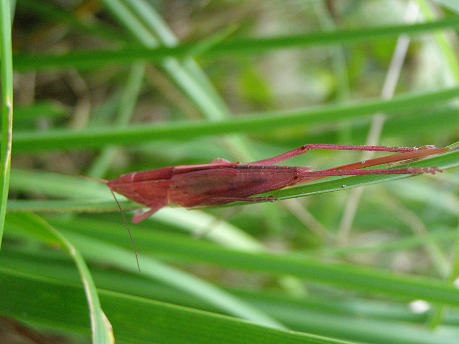 Ninfa di Ruspolia nitidula, la colorazione è dovuta ad un fenomeno noto come eritrismo comune negli ortotteri sia celiferi sia ensiferi. L'eritrismo può interessare tutto il corpo o solo parti di esso, a testimonianza che negli ortotteri o almeno in alcune specie il colore non è un buon carattere diagnostico. |