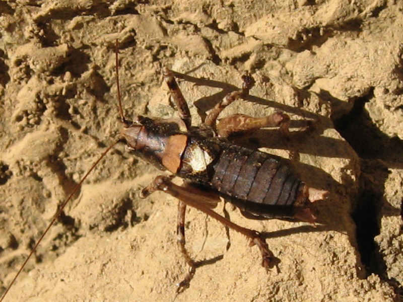 01 – Ambiente: Colina di Postalesio è un pascolo a circa 2000 metri e ci si accede partendo dall’abitato di Postalesio con una strada abbastanza buona, se si eccettua il periodo del disgelo in cui spesso è soggetta a piccole frane e scariche di sassi. Nello specifico, la cavalletta fotografata si trovava lungo il percorso a circa 1600 metri di quota dove il 29 novembre 2006 "faceva caldo". Qui è presente un bosco maturo di Picea excelsa, Larix decidua, Fagus selvatica con alberelli e cespugli di Alnus sp, rari Sorbus eucuparia… Al bordo strada e nelle piccole radure Viola tricolor, Loiseleuria procumbens, Crepis sp, Vicia sp, Phyteuma ovatum, P. sp, Valium sp, Dryopteris sp, Digitalis grandiflora, Dactylorhiza fuchsii, Centaurea nemoralis, Astrantia minor, Aquilegia atrata, Lotus alpinus, Dianthus sp, Geranium sylvaticum, Verbascum densiflorum, Solidago sp… Circa 1600 m di quota, versante sud.