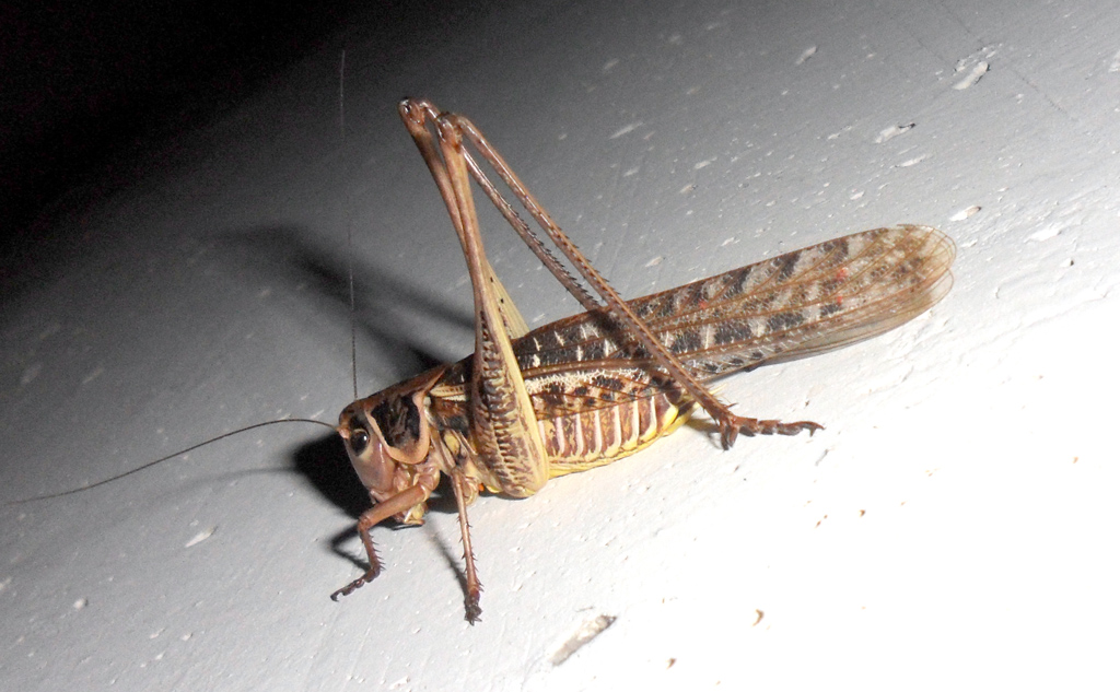 Questo bestione l'ho trovato appena fuori la veranda sul muro del vialetto condominiale. Mi ha permesso di fare solo una foto, poi è volato via. Credo sia il Decticus albifrons, ma non sono un grande esperto di Ortotteri ![]() Non l'ho misurato perché da quanto so è particolarmente irascibile e il morso è doloroso |