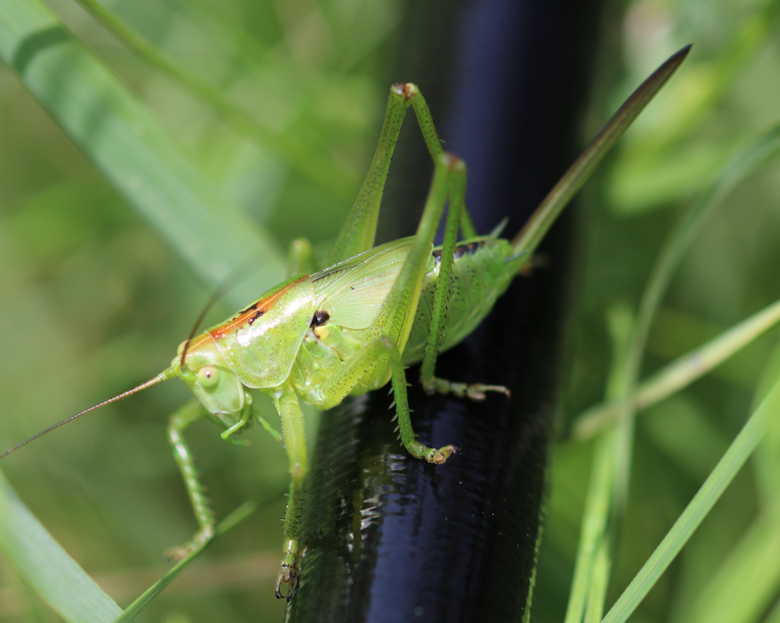 Direi sub-adulto di Tettigonia viridissima (si vede l'ovopositore curvato verso il basso).