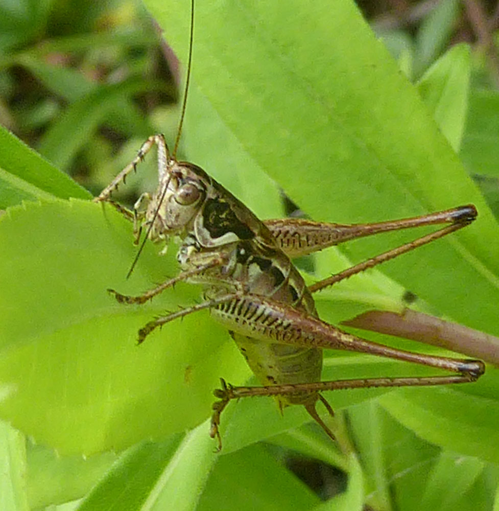 Buonasera! Fotografata poco fa; credo sia una Tettigoniidae. Mi ricorda vagamente le Pholidoptera che ho visto altre volte, ma non saprei fare ipotesi. Qualcuno sa identificarla?