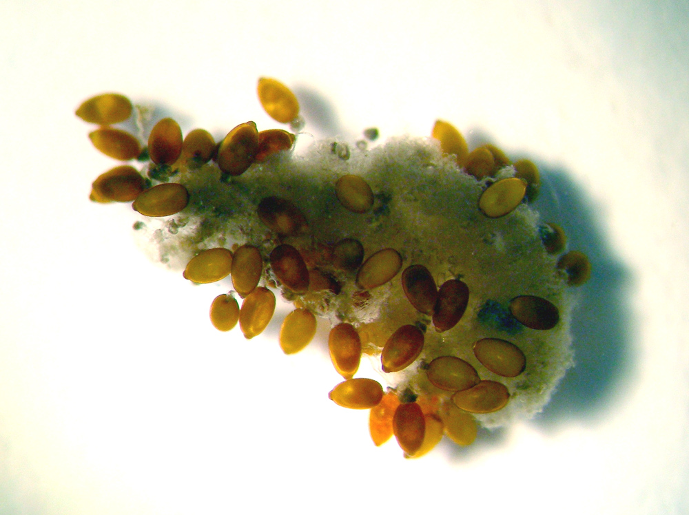 Uova di Lindenia tetraphylla; lunghezza circa 1 mm
